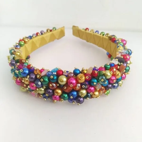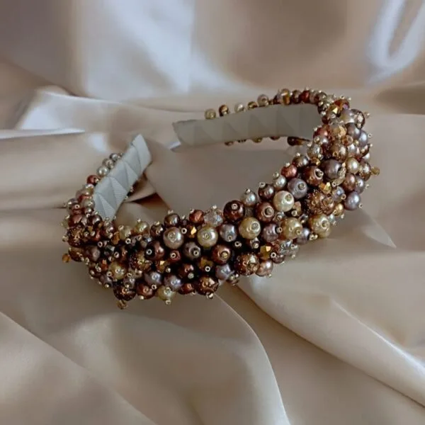 Esta exquisita diadema está elaborada con piedras Miyuki, perlas, mostacillas y accesorios decorativos, creando un accesorio que destaca por su belleza y detallado diseño.Una obra de arte disponible en dos elegantes colores: plateado y dorado.