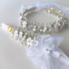 Celebra la pureza y el simbolismo de la Primera Comunión con nuestro Combo Cirio y Tiara en Alambrismo, elaborado artesanalmente con perlas y murano en tonos nacarados que reflejan luz y elegancia. Cada pieza combina armoniosamente la delicadeza del alambrismo con un diseño refinado que realza los momentos más especiales. Puedes elegir el acabado en alambre dorado o plateado, según el estilo de la ceremonia. Este conjunto incluye una tiara delicada y un cirio decorado con flores hechas a mano, ideales para conservar como recuerdo. Hecho con amor, precisión y materiales de calidad, este combo representa fe, pureza y belleza en un solo detalle.