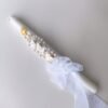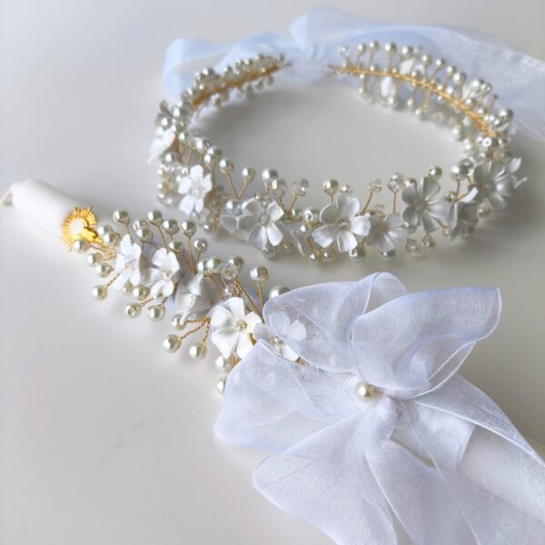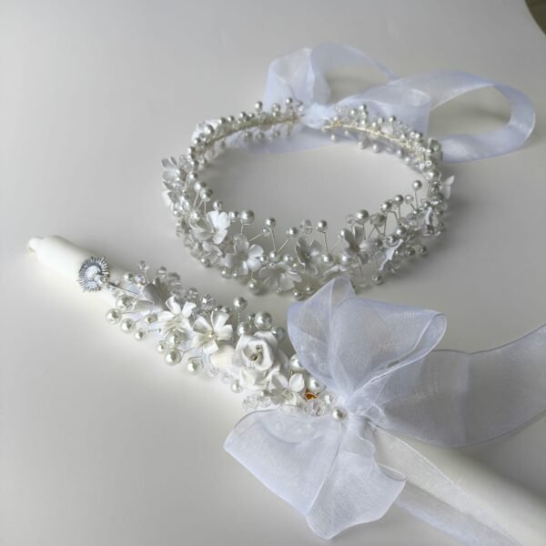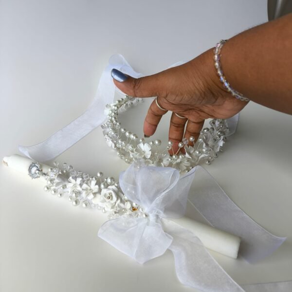 El Combo Cirio y Tiara en Alambrismo es el toque perfecto para la Primera Comunión. Hecho con perlas y murano, combina elegancia y simbolismo en cada detalle. Puedes elegir entre alambre dorado o plateado según tu preferencia. Cada pieza está elaborada artesanalmente, ideal para realzar la ceremonia y conservar un hermoso recuerdo de ese día tan especial.