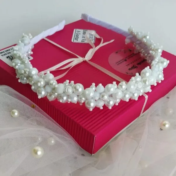 Diadema delgada Color Blanco en recamado especial, elaborada en perlas, y mostacilla.